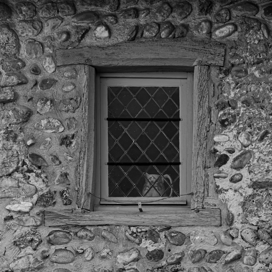 Derrière sa fenêtre médiévale, on dirait une cruche d’époque, même si je la trouve un peu grise. Une vierge effarouchée dans sa tour ?