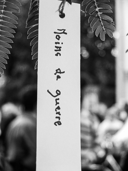 Ce message était l’un de ceux accrochés aux branches d’un arbre lors de la fête du quartier. J’ai pensé qu’il exprimait une aspiration présente dans une bonne partie de la population.